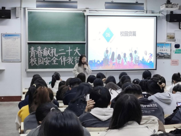 尹健臻从防盗、消防、交通、防诈骗四个方面进行教育宣讲。针对高校高发的网络安全,通过详实生动的典型案例,剖析了大学生身边的典型案例,重点讲解了“校园贷”、网络购物、兼职刷单等电信诈骗形式,分析了诈骗手段,讲解了各类诈骗的应对方法和防范措施。此外,她还为同学们讲解了盗窃常见的手段、常发地点和防范措施。同时,尹健臻还结合校园常见的交通安全、消防安全、饮食安全,希望同学们从思想上高度重视校园日常安全,切不可麻痹大意,要充分认识“安全无小事,事事需留心”的重要含义,要提升自我防护意识,保障人身安全。