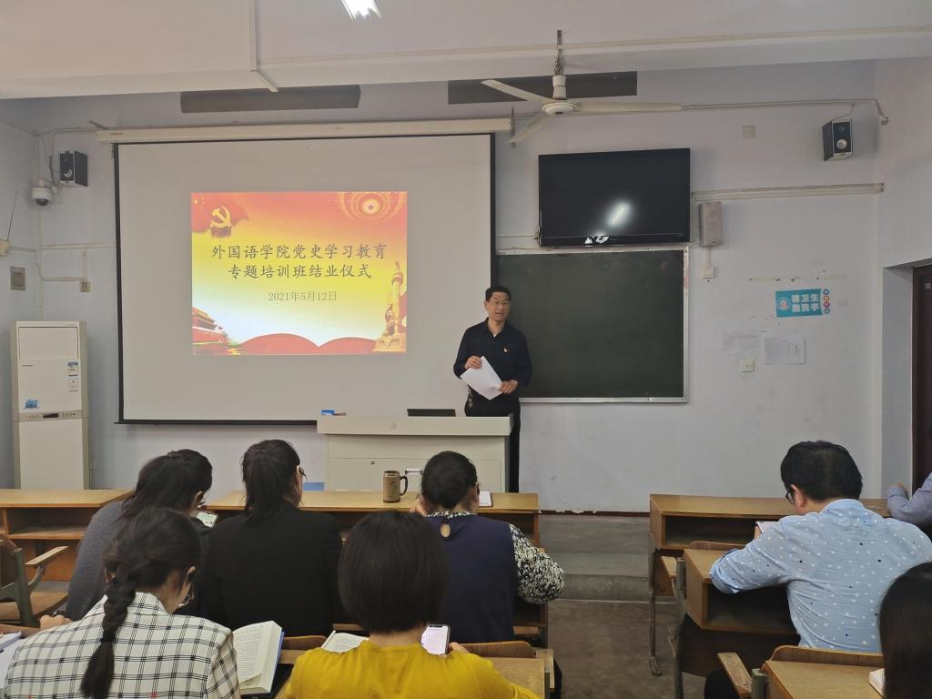 结业仪式上,党总支书记刘玉宝就更好推进党史学习教育,提出了以下三点意见和要求:一是增强政治自觉,深化党史学习,把习近平新时代中国特色社会主义思想作为重中之重。要深入系统学习习近平总书记关于各领域各方面工作的重要论述,跟进学习习近平总书记的最新重要讲话精神,坚持读原著、学原文、悟原理,坚持理论联系实际,在学深悟透、学以致用上下功夫,通过学习不断提高理论素养、政治素养、精神境界和解决问题的能力,切实增强“四个意识”、坚定“四个自信”、做到“两个维护”,自觉在思想上政治上行动上同以习近平同志为核心的党中央保持高度一致。二是牢记初心使命,厚植为民情怀,把聚焦师生群众利益关切、维护师生群众切身利益作为工作的出发点和落脚点。要深刻领会并躬身践行党的性质宗旨,始终把人民放在心中最高位置,想师生之所想、急师生之所急,把学习党史同总结经验、立足现实、推动工作、为民服务结合起来,不断厚植为民情怀,真正俯下身子甘当为民服务的孺子牛。三是积极担当作为,奋力开创新局,把推动实现学院高质量发展作为贯穿工作实践的主线主题。要提高站位、胸怀大局,做到对党忠诚、担当负责、勇挑重担,争当改革发展的排头兵,要在担当精神上“鼓足劲”, 在实干能力上“加满油”, 在实干作风上“把稳舵”,心中装着学校和学院建设发展大局、装着师生群众利益关切,要始终坚持立德树人根本任务、聚焦学院改革发展目标任务,统筹规划、敢想敢干、稳抓稳打,不断增强看问题的眼力、谋事情的脑力、创新局的胆力,以奋斗者的姿态和实干者的担当,推动学院高质量建设发展。