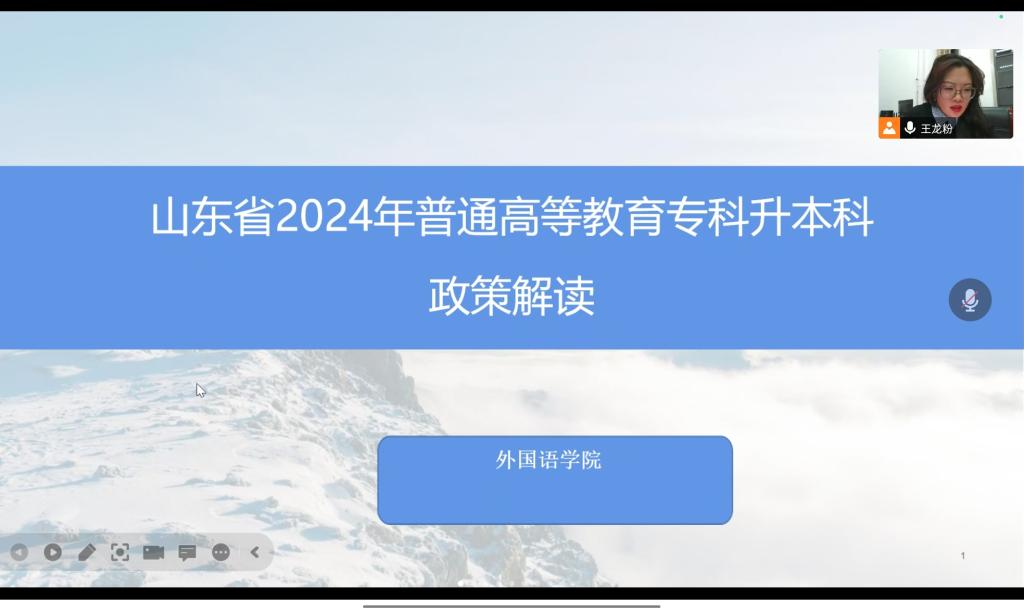 为帮助专升本学子充分掌握考试政策信息,明确学习方向、增强学习动力,12月21日晚,永利集团88304通过“腾讯会议”网络平台召开山东省2024年普通高等教育专科升本科政策解读主题班会。本次班会由专职辅导员王龙粉主持,永利集团883042021级全体专科班学生参加了此次班会。
