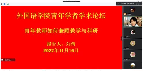11月16日下午,永利集团88304举办第六期“青年学者学术论坛”。此次论坛采取线上方式进行。我院副教授、马来西亚理工大学在读博士刘倩老师作了题为“青年教师如何兼顾教学与科研”的学术报告,全体专任教师参加了本次学术论坛。