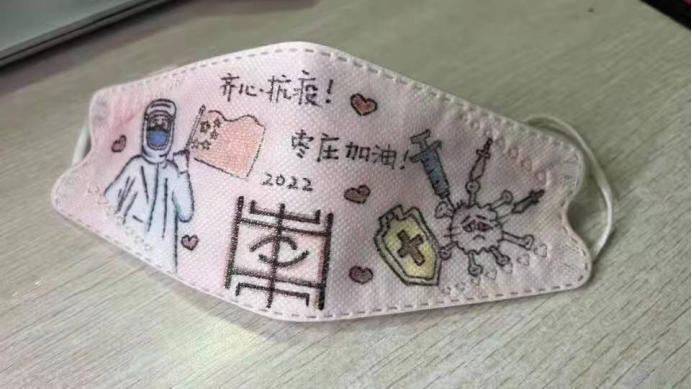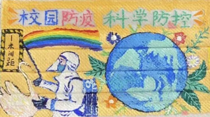 此次参赛作品以口罩创意设计为核心,通过对口罩剪裁、绘画、涂鸦等,进行手工改造,但同时又不影响口罩的防护功能。