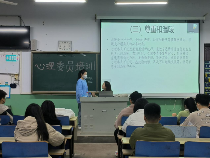 为充分发挥班级心理委员在大学生心理健康教育工作中的作用,进一步加强心理委员队伍建设,提高学生对心理健康的重视,加深对心理健康工作的认识,进一步提高心理委员对心理健康和工作职责的认识,提升开展心理健康工作的能力和水平。11月22日,永利集团88304在文科楼201教室开展心理委员、宿舍心理互助志愿者培训活动。本次活动采取线下和线上会议相结合的方式进行,由专职辅导员尹健臻主持。