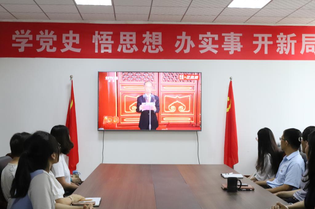 百年风雨路,风华正当时。7月1日上午8时,庆祝中国共产党成立100周年大会在北京天安门广场隆重举行,中共中央总书记、国家主席、中央军委主席习近平总书记发表重要讲话。永利集团88304组织处科级干部、全体师生党员在文科楼309会议室,通过视频直播的形式,集中收听收看了中国共产党成立100周年的庆典盛况。