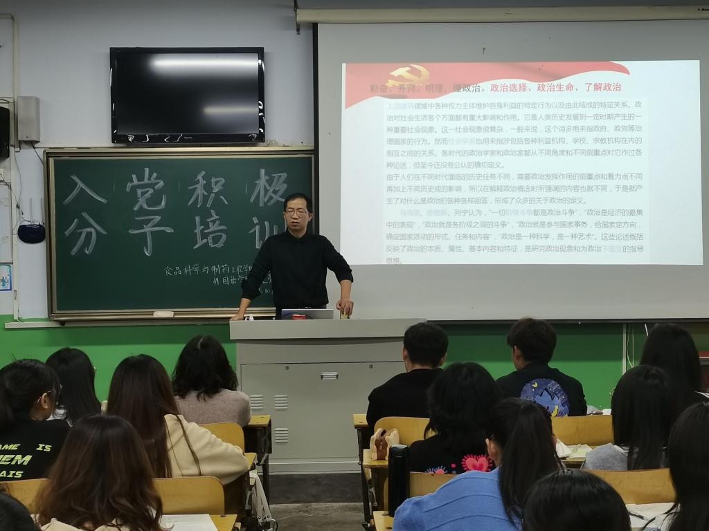 黄成亮从以党员的标准要求自己、党的组织纪律和作风两个方面进行了讲解,勉励学生要勤奋学习,提高自己的理论水平。他指出,入党积极分子要拥有崇高的理想信念和政治追求,努力使自己成为合格的社会主义建设者和接班人,要积极地投身到社会主义现代化建设中,为中华民族的伟大复兴而奋斗。