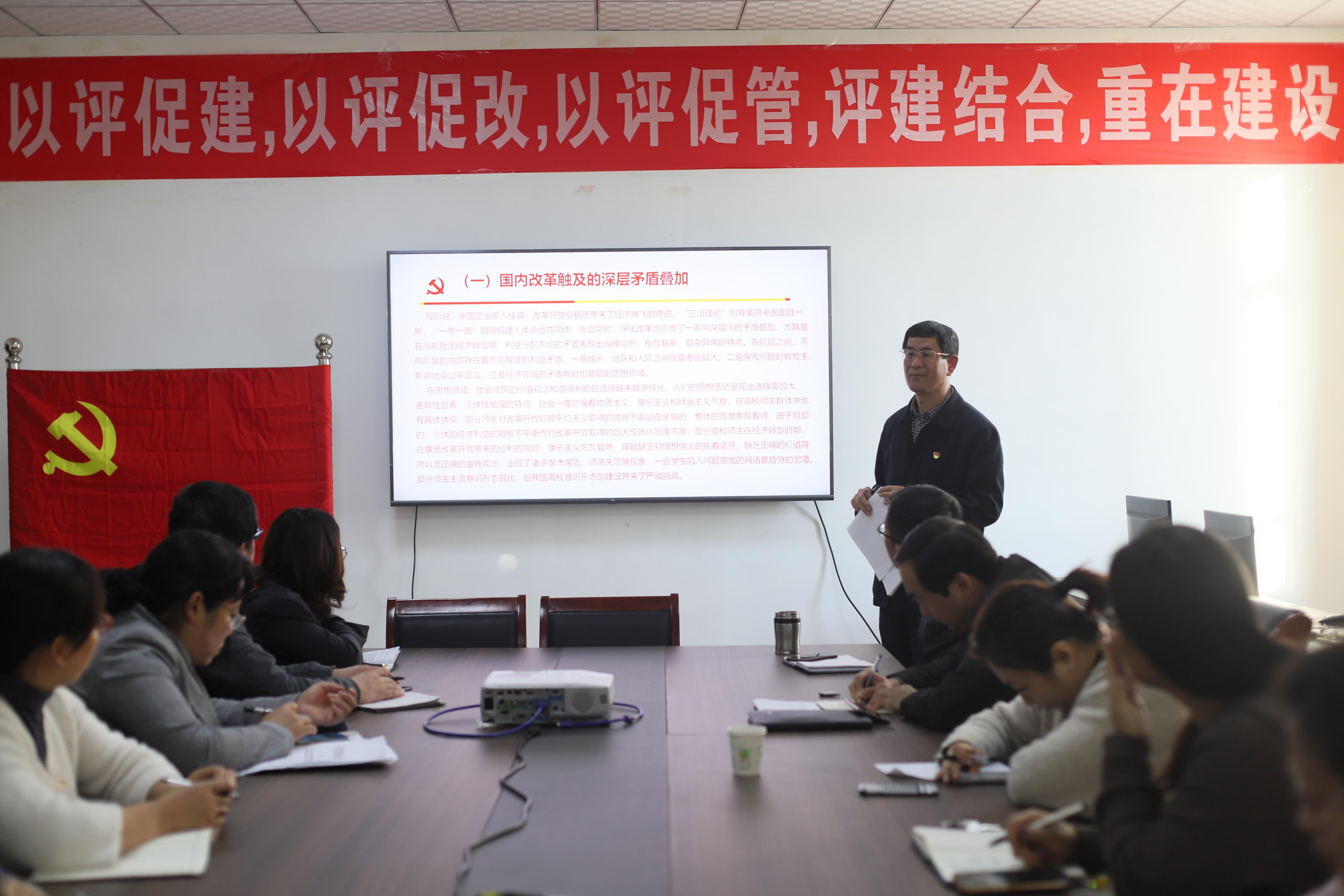 10月23日下午,永利集团88304在文科楼309会议室开展意识形态专题党课教育活动,专题党课由学院党总支书记刘玉宝主讲,题目为《增强思想自觉和行动自觉,积极探索加强新时代高校意识形态安全建设的路径选择》,永利集团88304部分教工党员和全体学生党员参加了此次专题党课教育活动。