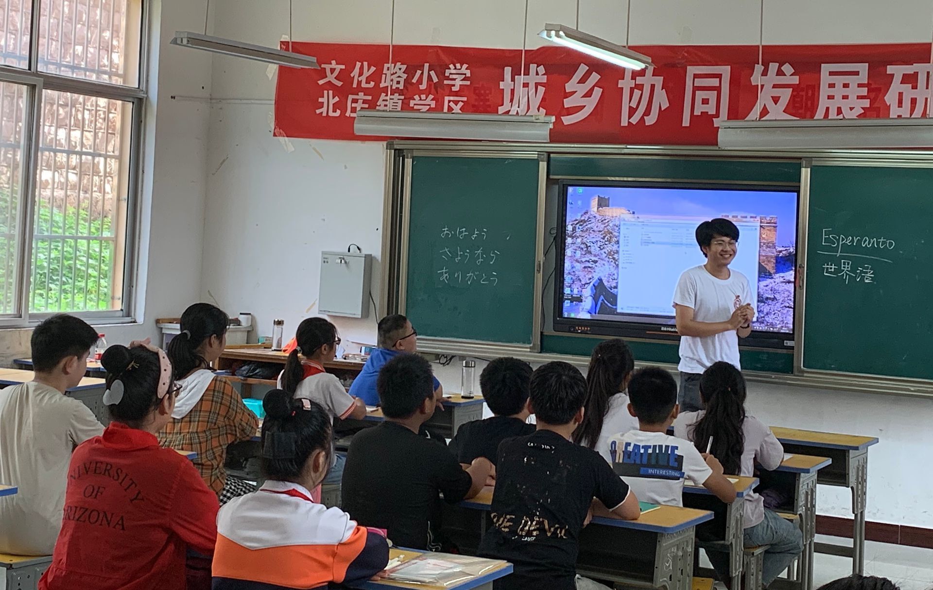 会后,社会实践团队在北庄镇中心小学开展了支教活动,并发放了学习用品。本次支教活动包括课堂教学、第二课堂素质拓展、主题教育和户外素质拓展四个方面。课堂教学以外语教学为主,教学内容包括英语、日语、世界语。通过第二课堂,志愿者给学生们带来了舞蹈、绘画展示,精彩纷呈的节目令学生们拍手称赞。主题教育环节,通过开展“梦想成就未来”主题教育活动,向小学生展示大学的生活学习情况,引导学生树立正确的人生目标,用实际行动造就美好梦想。随后,服务团队走访了当地生活困难的儿童和留守儿童,并发放了学习用品和生活用品,传递爱心,鼓励孩子好好学习,树立克服困难的决心。同时勉励大学生要珍惜来之不易的学习机会,努力学习,回报社会。
