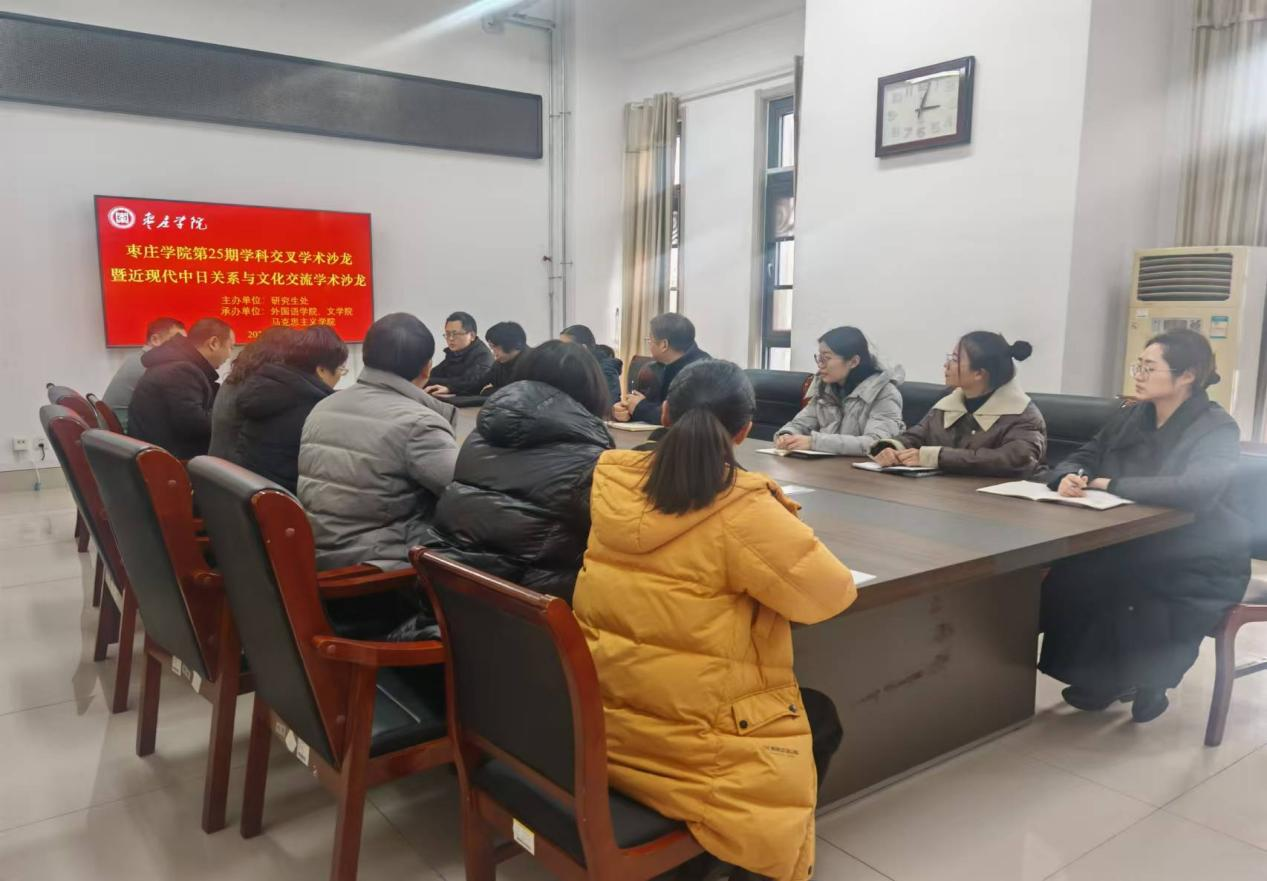 12月27日下午,由校研究生处主办,永利集团88304、文学院和马克思主义学院共同承办的第25期学科交叉学术沙龙暨近现代中日关系与文化交流学术沙龙在薛城校区豁然楼A102会议室举行。永利集团88304、马克思主义学院和文学院40余人参加了本次学术沙龙。