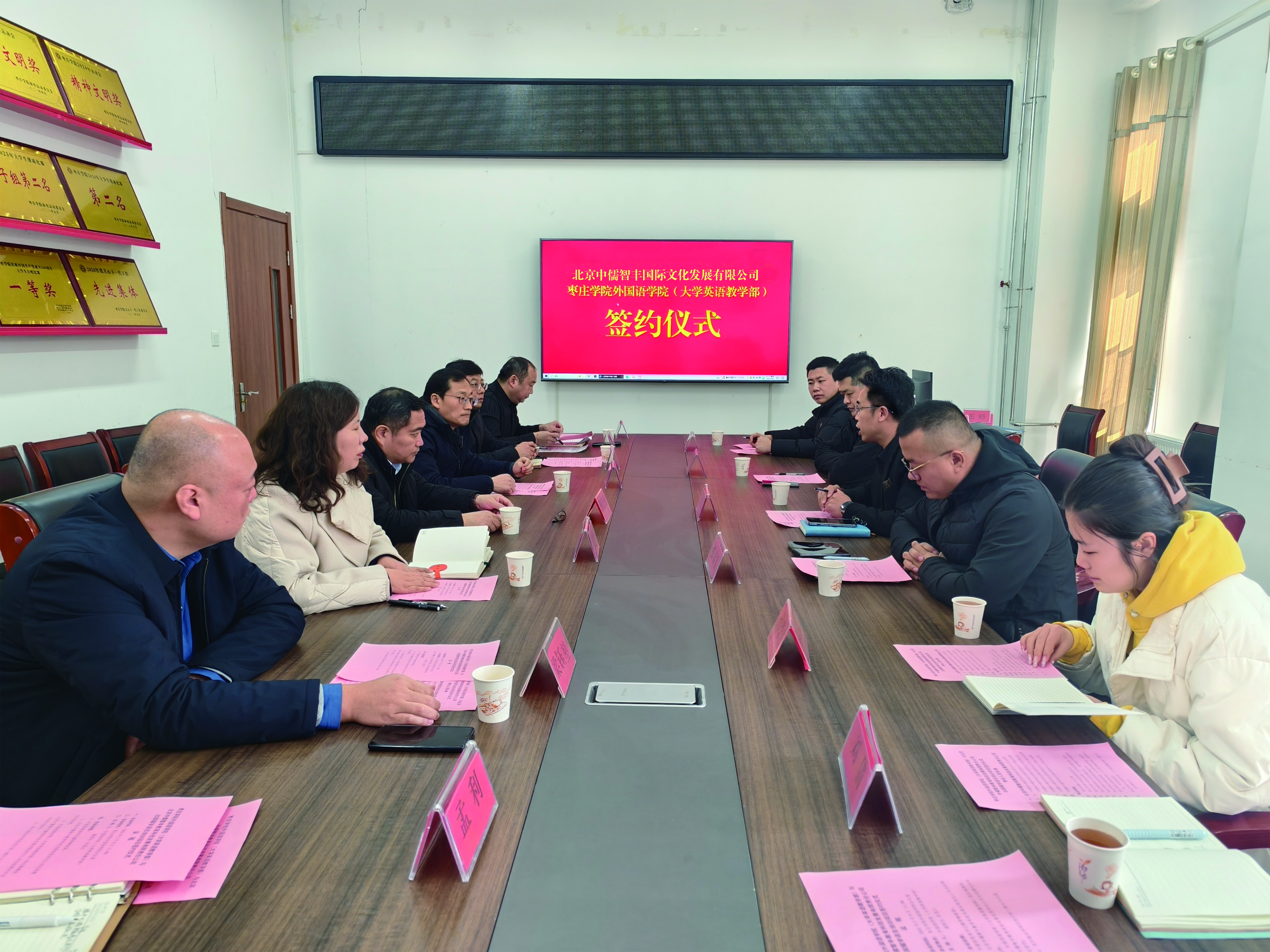 2月9日上午,永利集团88304(大学英语教学部)在薛城校区豁然楼A102会议室与北京中儒智丰国际文化发展有限公司举办海外留学与语言培训项目签约仪式。北京中儒智丰国际文化发展有限公司总经理刘丰、副总经理张春雷,校工会主席盛清银,国际交流处副处长、国际教育学院副院长梁钰堃,学院党委书记滕聿峰、院长韩建侠及其他党政领导、相关教师一同出席仪式。