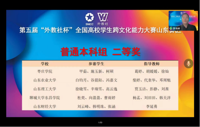 我校荣获第五届“外教社杯”全国高校学生跨文化能力大赛山东赛区二等奖