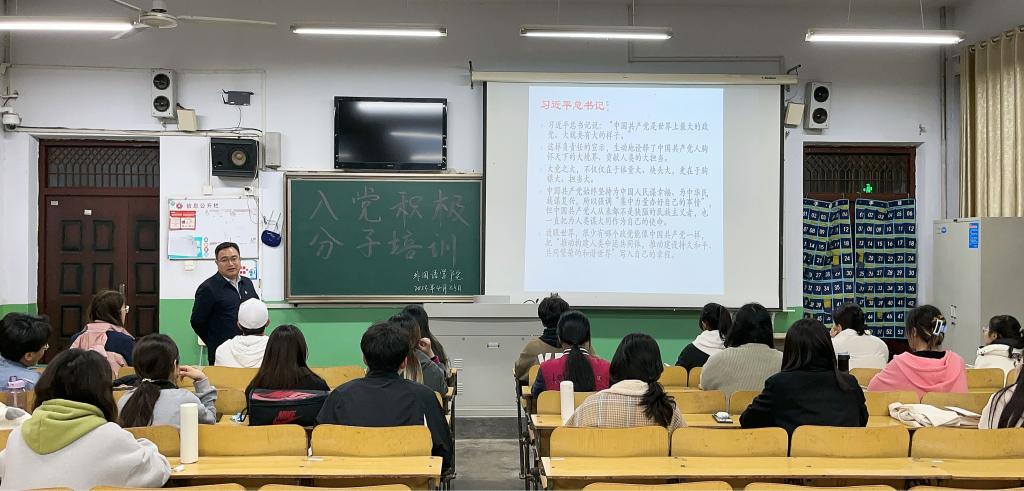 4月24日晚,永利集团88304学生党支部在文科楼101教室组织开展了入党积极分子培训党课——《中国共产党的性质、最高理想和根本宗旨》。此次党课由永利集团88304党总支书记盛清银主讲,我院本期27名入党积极分子参与了此次培训。