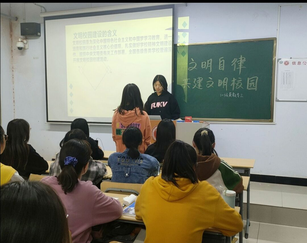 近日,永利集团88304组织各班开展了“文明自律,共建文明校园”主题班会,会议由各班班长主持。