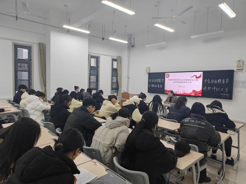 12月27日下午,永利集团88304在豁然楼A112教室召开2023年度团学组织工作总结暨学生会及自律委员会述职评议大会。团总支书记张婷、学生会及自律委员会主席团成员、各部部长参加了此次会议。