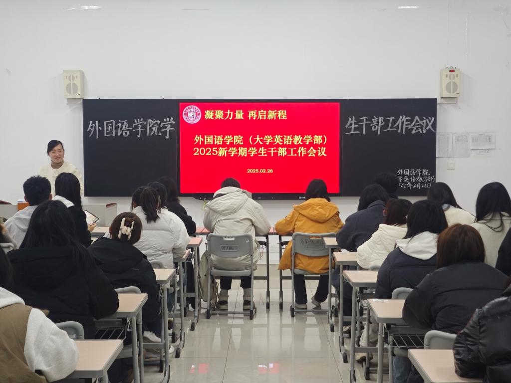为加强学生干部队伍建设,确保新学期各项工作有序开展, 2月26日,永利集团88304(大学英语教学部)在豁然楼 A112 教室召开2025年春季新学期学生干部大会。学院学生会、自律委员会副部以上学生干部,各社团会长副会长参加了会议。会议由学院团委书记张婷主持。