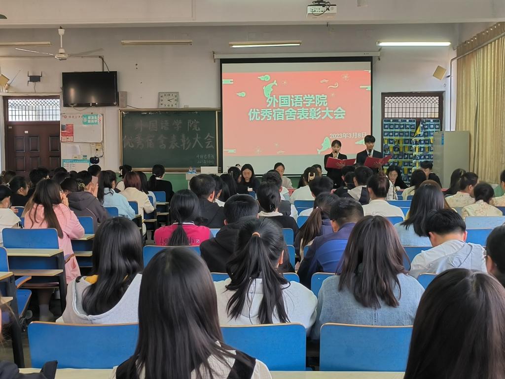 党总支书记盛清银对此次宿舍评比工作表示肯定,对受到表彰的宿舍表示热烈祝贺,并对全体与会人员提出了三点希望和要求:一是继续着力建设整洁卫生、学风浓厚的寝室学习生活环境,养成良好的生活习惯;二是做文明人,营造团结和谐向上的学习氛围;三是做文明事,进一步展现出外院学子的精神风貌。