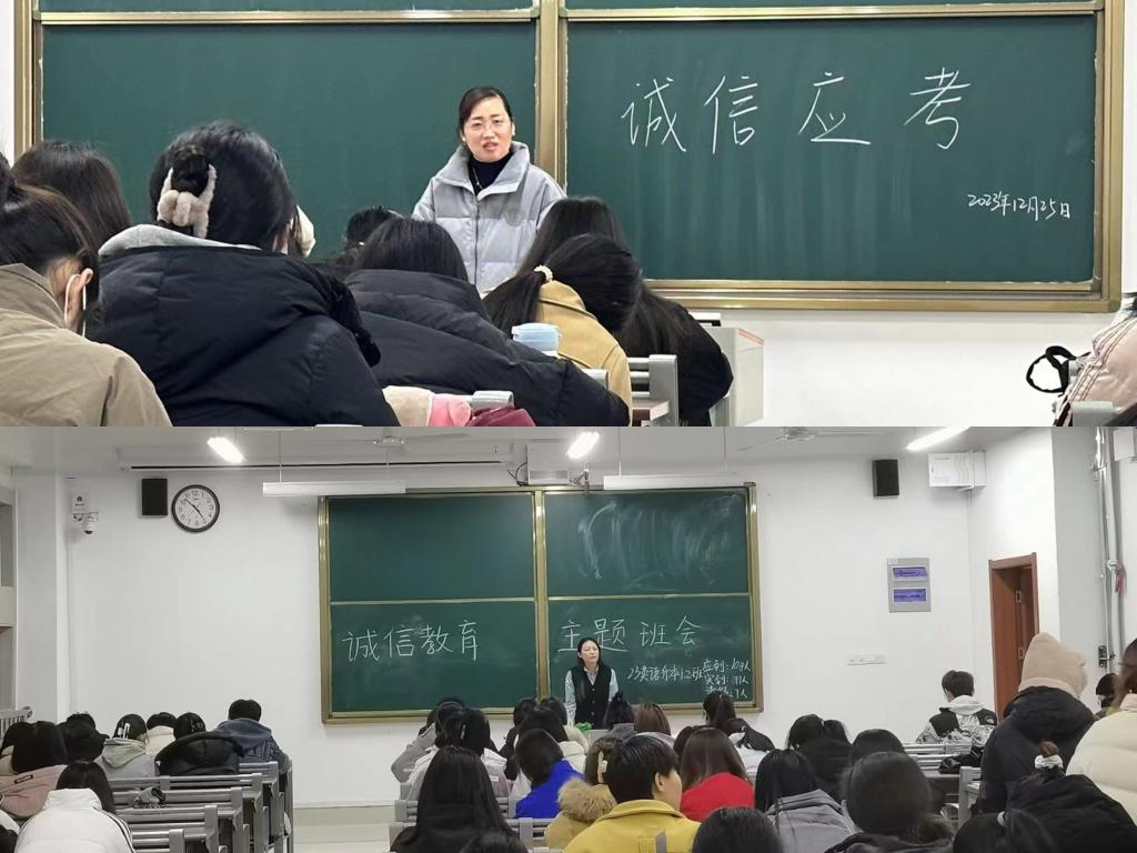 班会内容主要围绕诚信考试、考风考纪的严肃性和重要性,考试作弊违纪处分教育以及考试作弊的危害等,教育引导学生以拼搏进取的精神开展期末复习,迎接考试。会上,解读了学校危机处分条例、分析了违纪典型案例,组织学生学习了《国家教育考试违规处理办法》《永利集团课程考核管理办法》等有关文件,帮助学生更好理解学校的规章制度,提高诚信考试意识,自觉遵守考试纪律。会后,组织学生签署了《诚信考试承诺书》。
