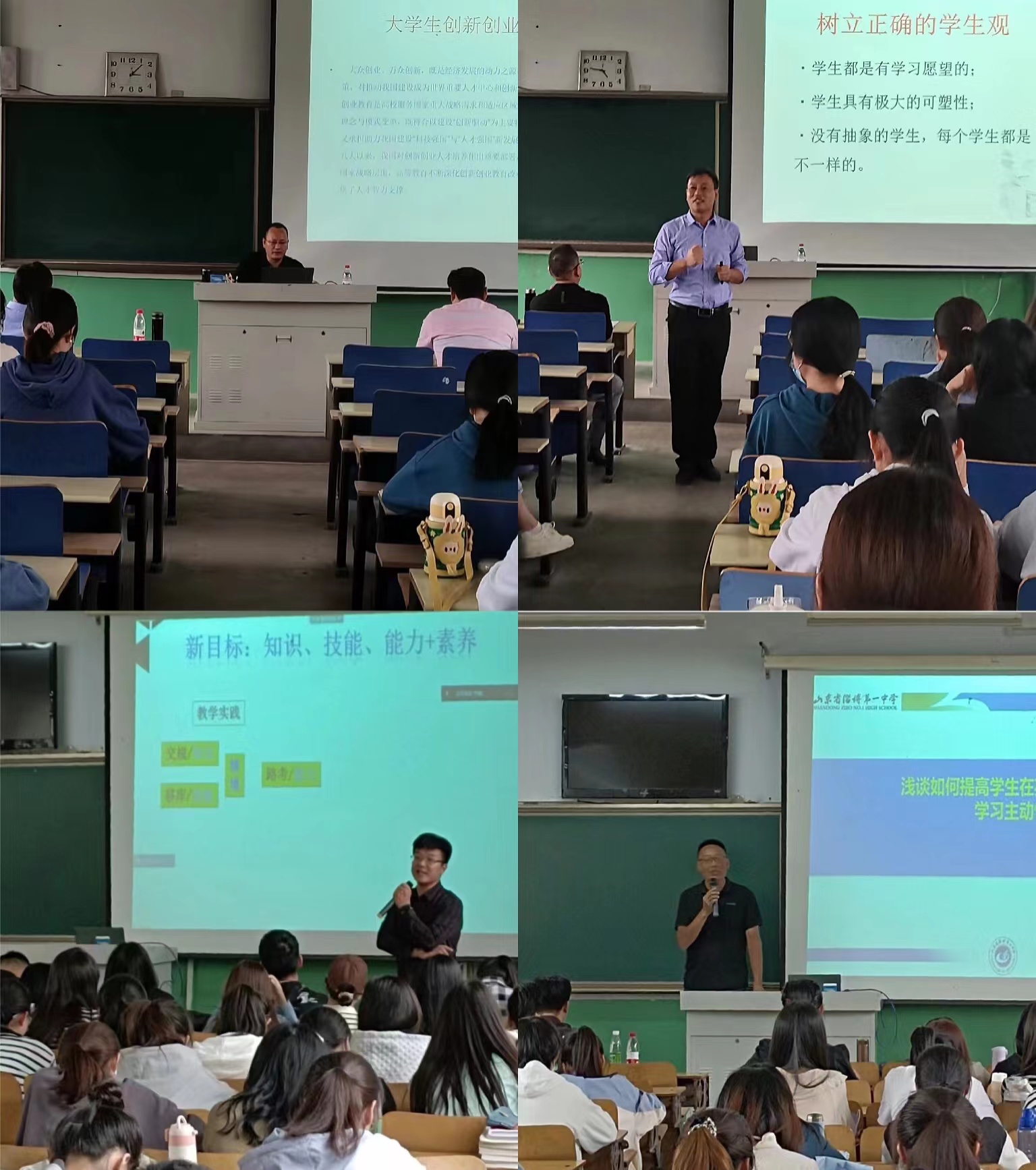 四位优秀校友分别围绕大学生创新就业教育、立德树人背景下班级管理与学生教育、如何提高学生在课堂上的学习主动性、基于主题意义探究的英语大单元教学设计四个主题开展了经验分享与交流。校友们报告内容深入浅出,引人深思,现场气氛十分活跃。